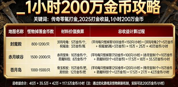 2025 传奇 SF 打金攻略:零氪 1 小时 200 万金币,附最新版本实测数据
