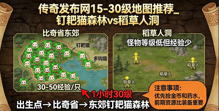 图片建议:插入 “比奇省新手任务流程图”,ALT 标签:传奇SF1-30级新手任务攻略。