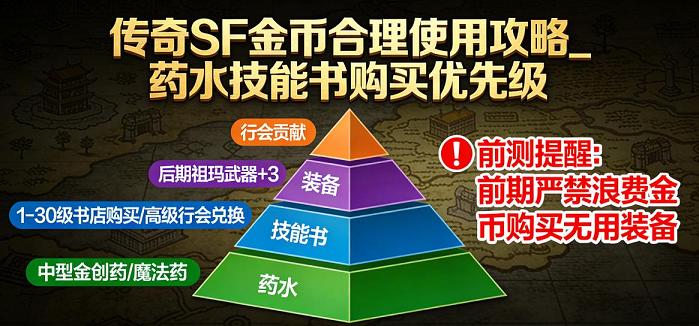 金币合理使用:前期金币优先买 “药水” 和 “技能书”,不要浪费在 “无用装备” 上;后期可用于 “装备强化” 和 “行会贡献”。