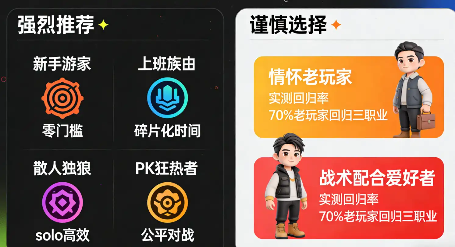 单职业版本的优缺点非常鲜明,并非所有人都适合。结合实测体验,以下4类人群适配度高,2类人群建议慎选。